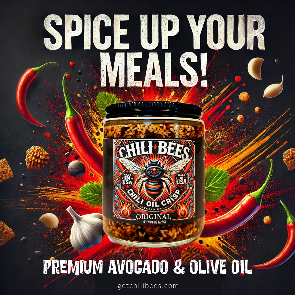 At Chili Bees, we’ve perfected the art of crafting flavorful chili crisps with premium ingredients. Each jar is infused with crispy chili flakes, aromatic spices, and high-quality avocado and olive oils, delivering the ultimate balance of heat, crunch, and savory depth. From OG to Curry to Italian, our collection has a flavor for every craving.